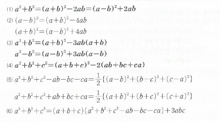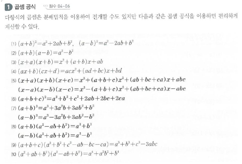 곱셈 공식과 곱셈 공식의 변형입니다.