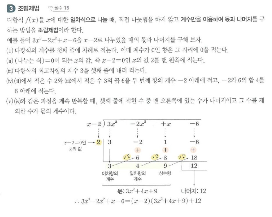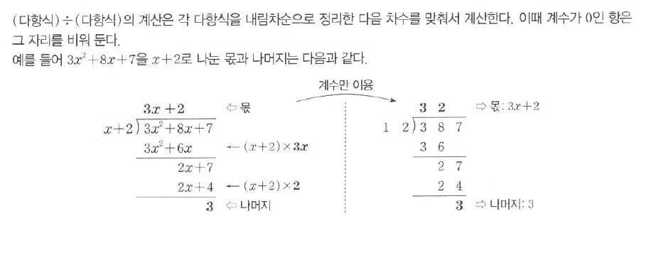 그래서 일단 곱셈 공식은 건너 뛰고 다항식의 나눗셈과 ...