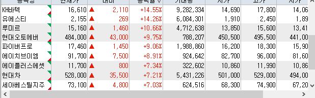 | 한미반도체(042700) | 현대로템(064350) | 대한전선(001440) | 자화전자(033240) |