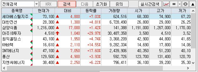 | 풍산(103140) | 자화전자(033240) | SK증권(001510) | HMM(011200) |